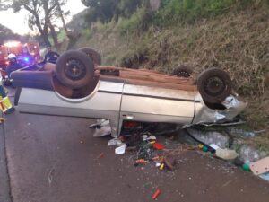 Uma Saveiro, com cinco pessoas, capotou neste domingo (11), na BR-277 em Ibema. De acordo com a PRF (Polícia Rodoviária Federal) o motorista perdeu o