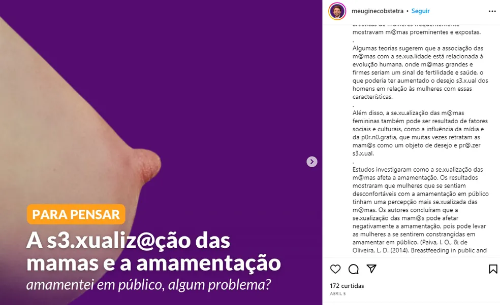 Em um dos conteúdos publicados recentemente, ele “militou” sobre o combate à sexualização das mamas.