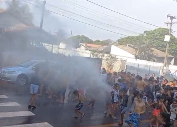 Escola de São João do Caiuá Pr usa caminhão-pipa em ‘recreio molhado’ para refrescar alunos; vídeos