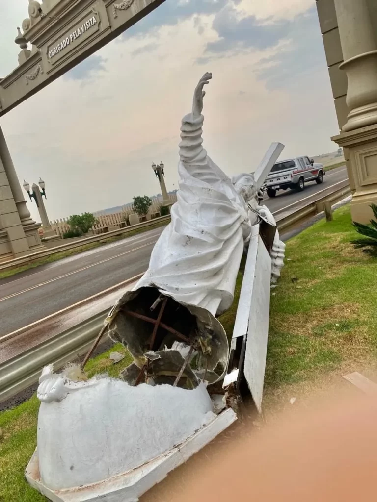 Vendaval derruba imagem do Cristo em Lunardelli Pr