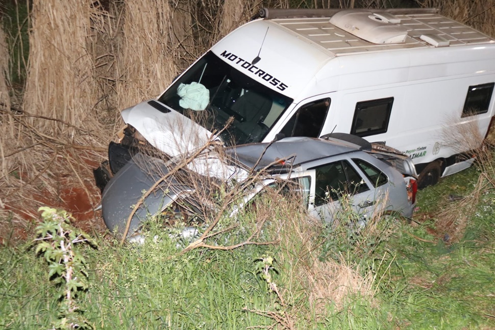Uma mulher morreu e um homem ficou gravemente ferido em um acidente registrado na noite deste domingo (24), na PR-487, a cerca de 3 km da entrada da Fazenda Onça Parda, entre Campo Mourão e Luiziana. A colisão envolveu um Volkswagen Gol e uma van que transportava uma equipe de motocross.