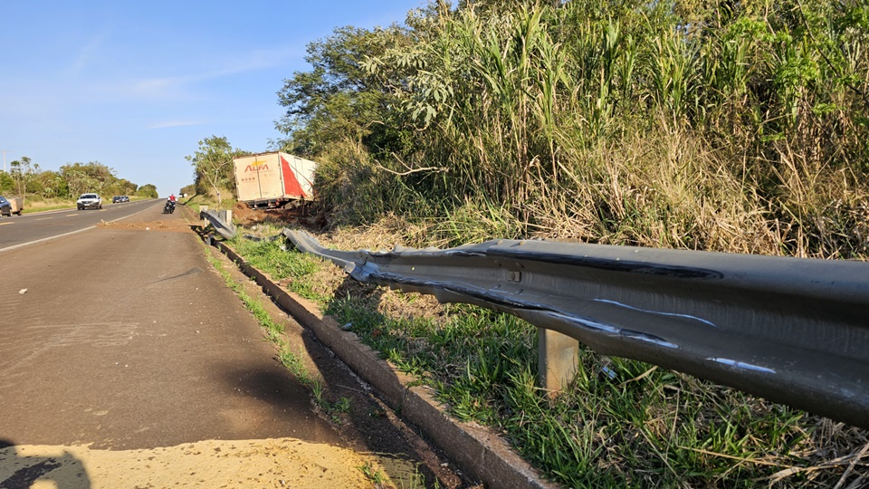 Com o impacto, a condutora do HB20 perdeu o controle do carro, mas conseguiu retomar a direção e parar no acostamento. Já o motorista do caminhão não conseguiu evitar a saída de pista. O veículo pesado atingiu o guard-raill, desceu um barranco e colidiu violentamente contra uma árvore.