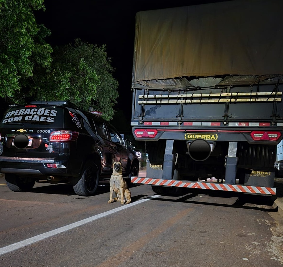 A Polícia Militar, por meio da equipe de Operações com Cães, localizou na noite de ontem um caminhão abandonado em um posto de combustíveis, no centro de Campo Mourão. A apreensão ocorreu após denúncia de atitude suspeita no local.