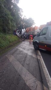 Uma violenta colisão frontal entre duas carretas no início da manhã desta sexta-feira, 7, na rodovia PRC-487, causou a morte de uma pessoa e deixou