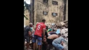 Parte de um prédio desabou na manhã desta sexta-feira, 7, no bairro do Janga, em Paulista, cidade da região metropolitana do Recife, em Pernambuco. Chove